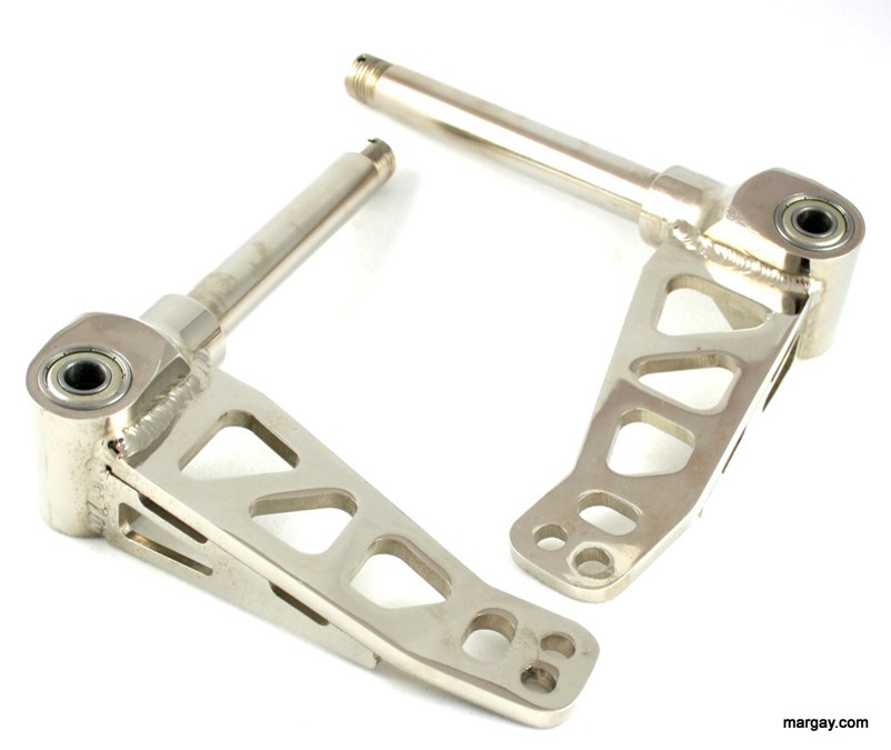 These 17mm spindles look great and get the job done. They have a brilliant chrome finish that really give them a slick look. Manufactured from billet steel, they have the durability to go the distance. These spindles feature a 3/8″ bearing.